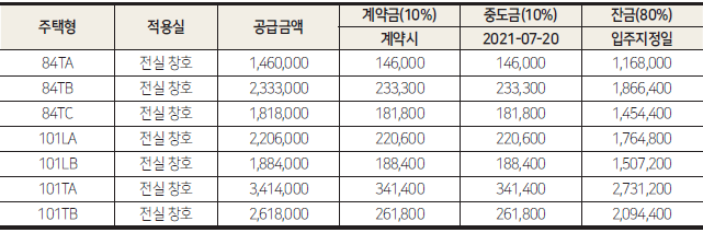 총 분양가가 9억원을 넘지 않아 중도금 대출을 받을 수 있는게 최대 장점인 것 같습니다.