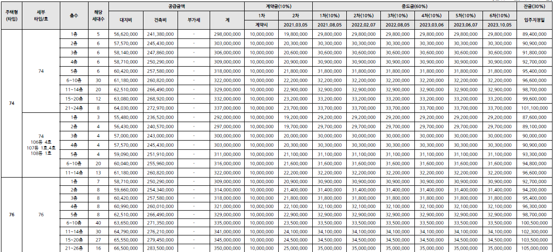 - 강릉자이아파트 분양가 및 분양금 납부일정 안내
