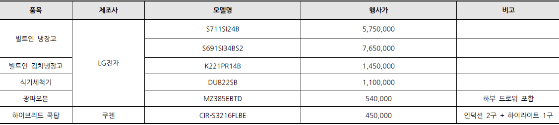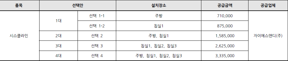 - 시스클라인, 가전 등 유상옵션 안내