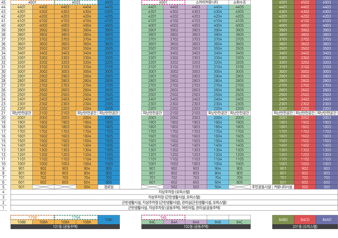 단지는 지하 5층~지상 최고 45층, 아파트 2개동, 전용면적 84~175㎡ 393가구와 오피스텔 1개동, 전용면적 84㎡ 119실, 단지 내 상업시설인 '힐스 에비뉴 감삼 센트럴'로 구성됩니다.