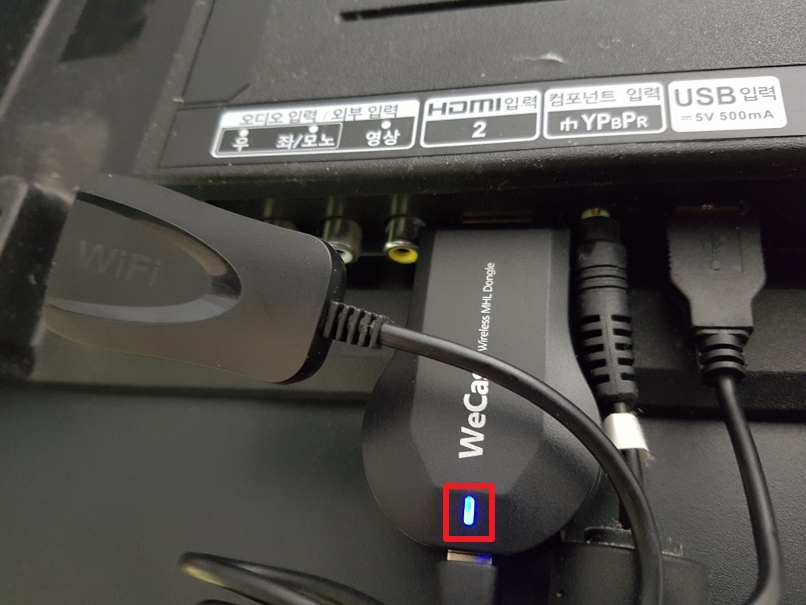 무선 MHL 스마트 미러링을 TV의 HDMI 2에 꽂아 줍니다.