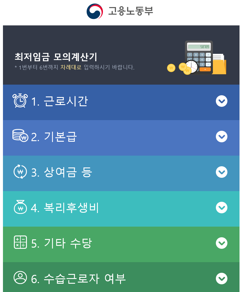 고용노동부 홈페이지에서 최저임금 모의계산기를 통해서 2021 최저임금을 계산하실 수 있어요.