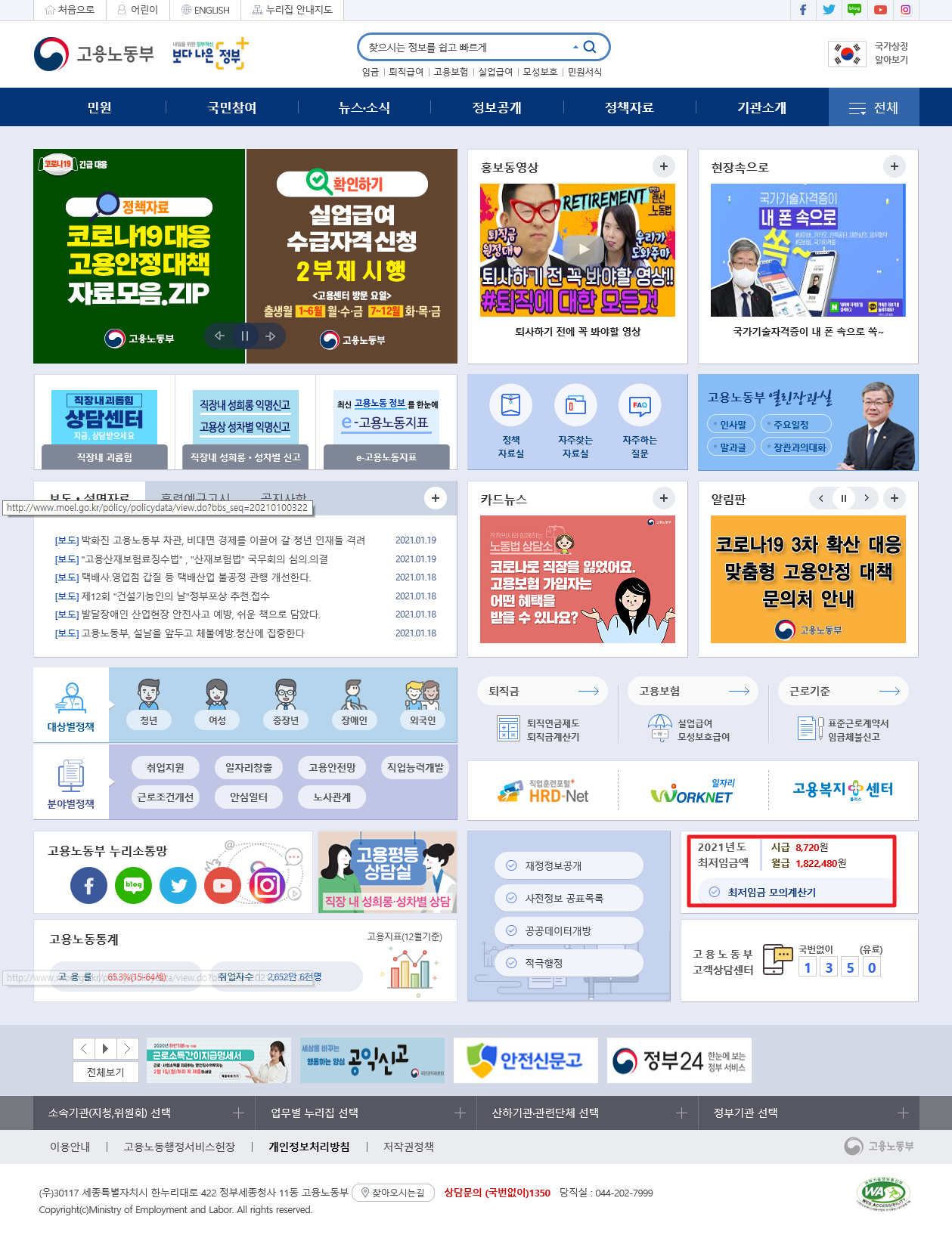 또한, 인터넷 검색창에서 최저임금위원회 또는 고용노동부를 검색하시면 되는데요.