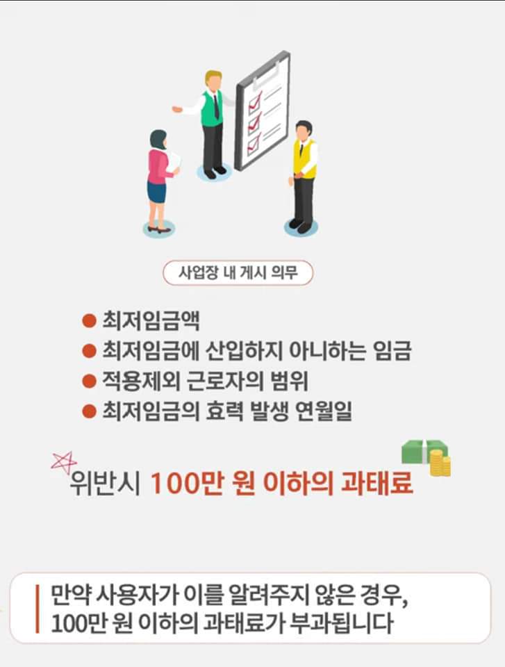 사업장 내 게시 의무가 있습니다.(사용자가 근로자에게 알려주어야 할 사항)