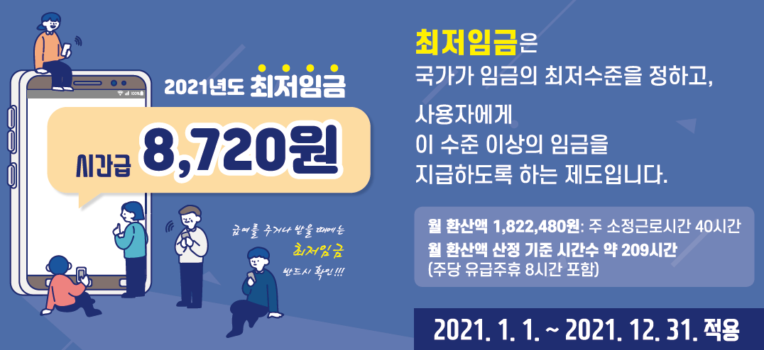 2021년 최저임금은 시간당 8,720원입니다.