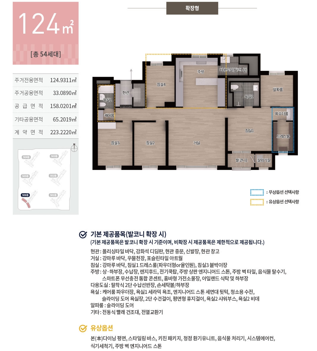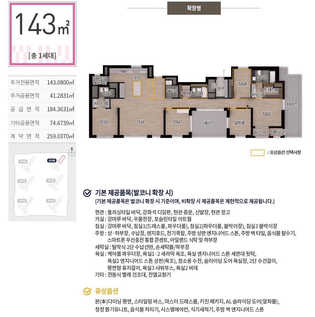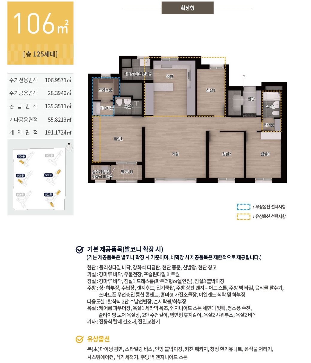 전용면적별로는 ▲84㎡A 442세대 ▲84㎡B 111세대 ▲84㎡C 36세대 ▲106㎡ 125세대 ▲124㎡ 54세대 ▲143㎡ 1세대 ▲154㎡ 2세대로 최근 수요자들의 선호도가 높은 전용면적 84㎡ 이상의 중대형 평형으로 구성됐다.