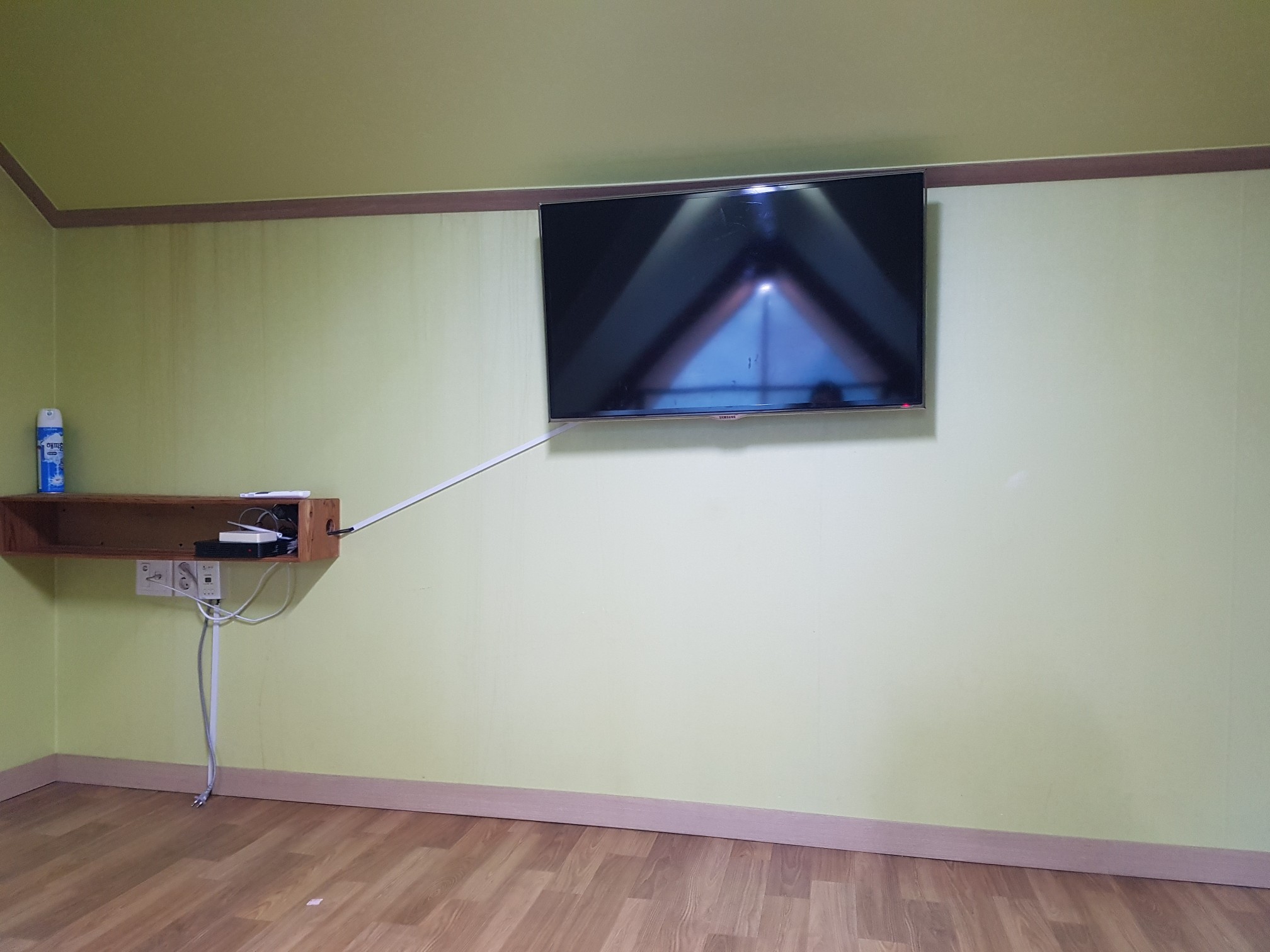 1층에 tv가 있었으면 했는데, 2층 침실에 있었어요.