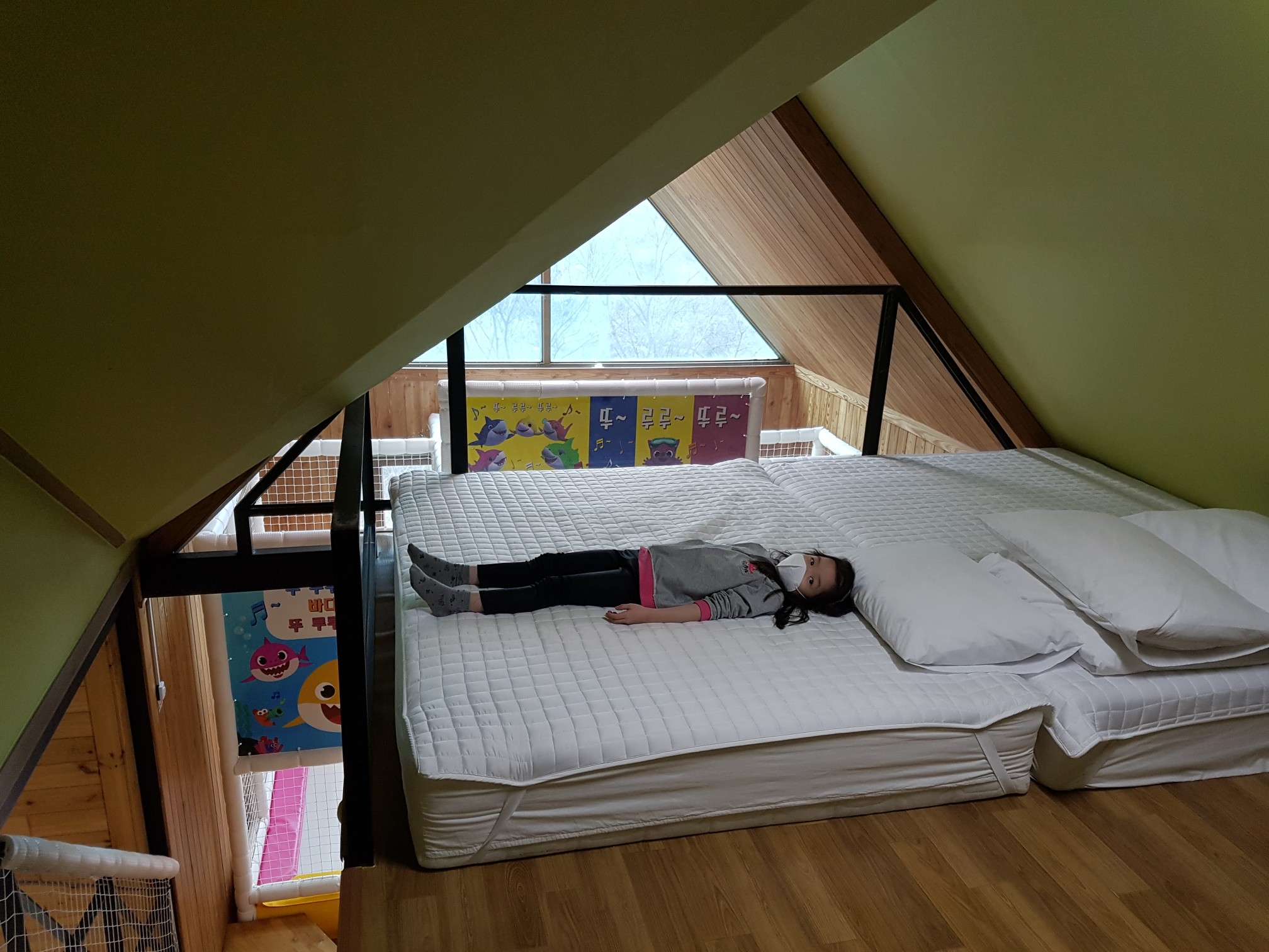 2층은 매트리스가 있는 침대방과 쪽방이 있답니다.
