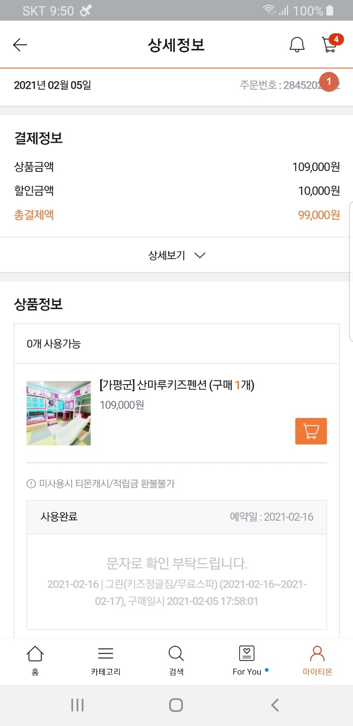 산마루키즈펜션 그린방을 1박에 10만9천원. 할인 받아서 9만9천에 예매했고요.