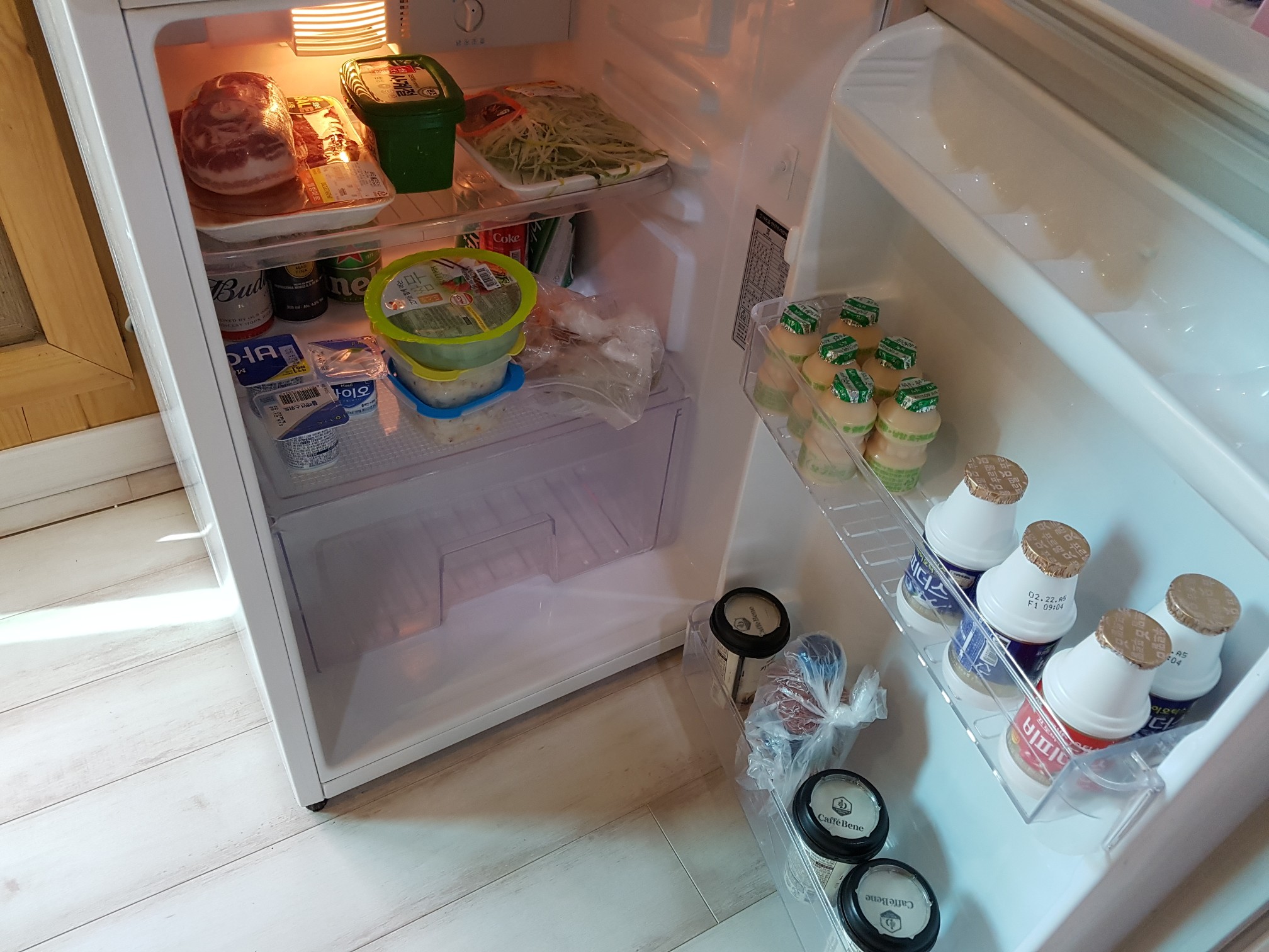 기본적으로 주방에는 밥그릇부터 수저세트, 전기밥솥, 전자레인지, 커피포트, 냉장고, 전기레인지가 장착돼 있답니다.