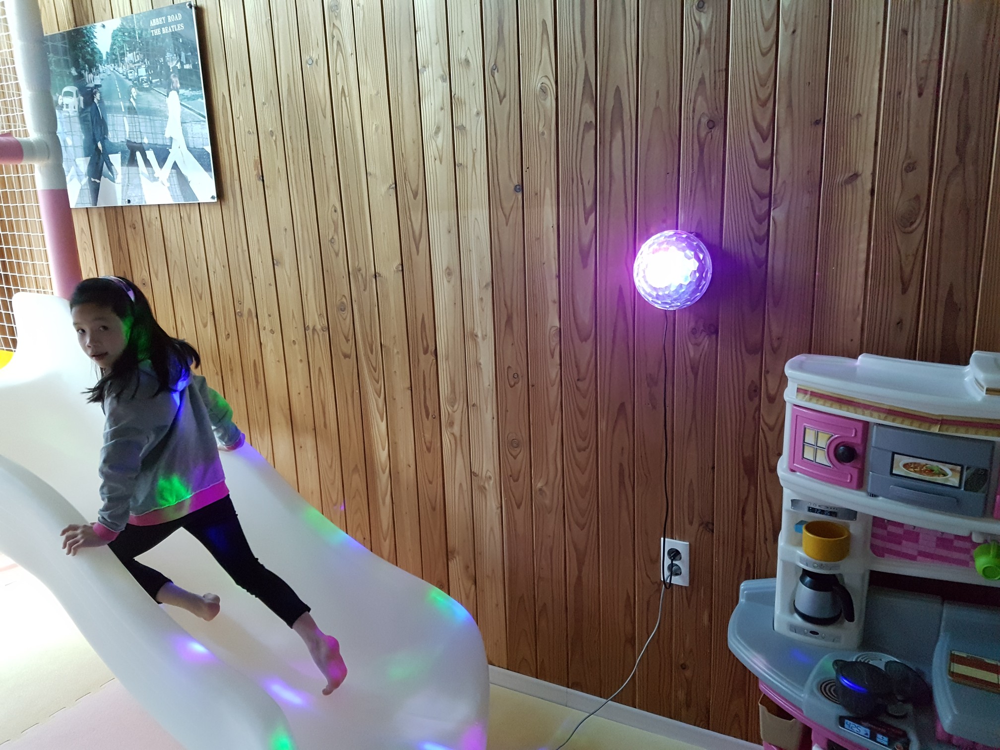 저녁에는 이렇게 미러볼을 이용해서 신나게 놀 수도 있답니다.^^
