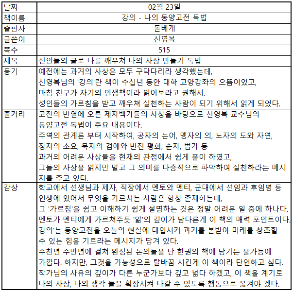 이상으로 강의 나의 동양고전 독법(신영복) 독후감 후기에 대해서 포스팅 해 보았습니다.