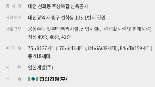 - 대전 선화동 주상복합아파트 사업개요