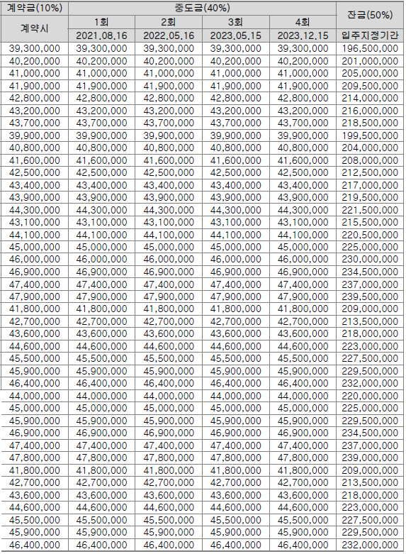 계약금 10% 중도금 40% 잔금 50% 로 구성돼 있다.