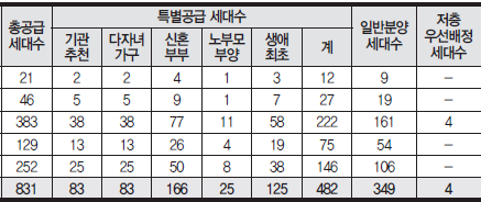 - 충남내포 대방엘리움2차 주택형별 공급면적 및 공급세대수 안내