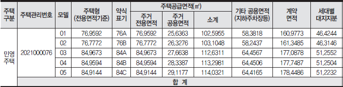 전용면적별 타입은 △76㎡ 67세대 △84㎡ 764세대로 구성됩니다.