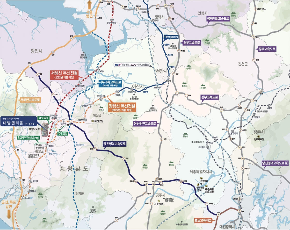 단지 인근으로 진행중인 서해선, 장항선 복선전철 사업이 완료돼 2022년 개통할 경우, 충청권은 물론 수도권 일대로의 접근성이 향상된다.