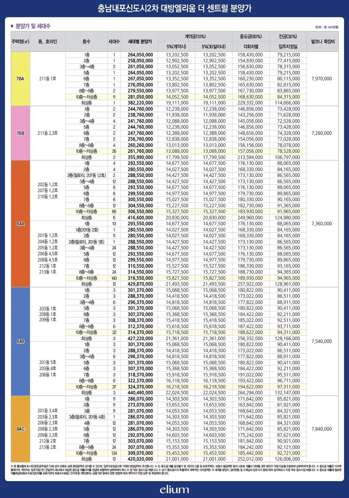 - 충남내포신도시2차 대방엘리움 분양가 안내