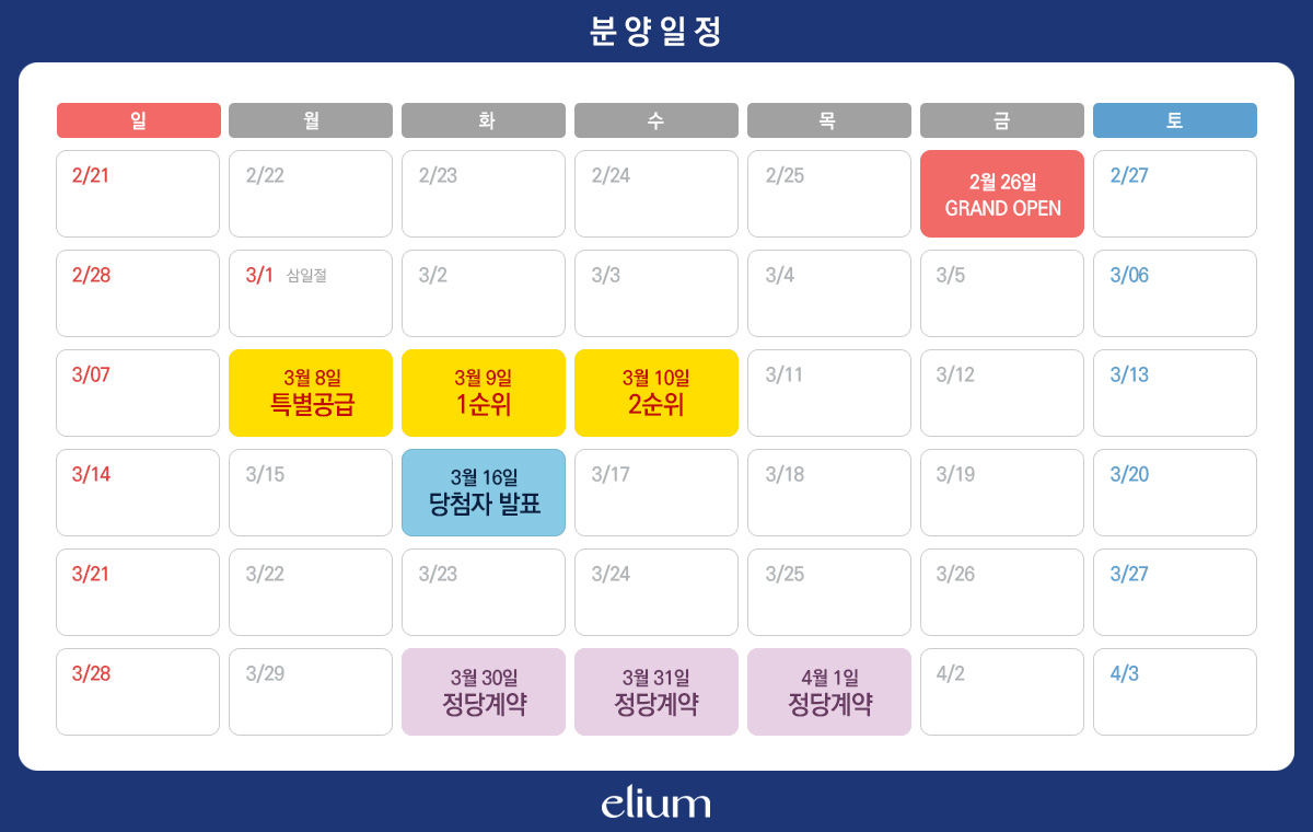 3월 8일에 특별공급을 시작으로 3월 9일 1순위, 3월 10일에 2순위 청약 접수를 받는다.