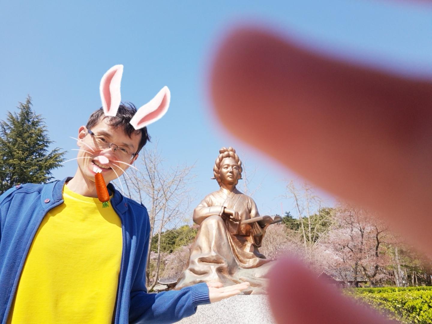 딸래미가 허난설헌 동상에서 나를 이렇게 찍어주었다.ㅋㅋ