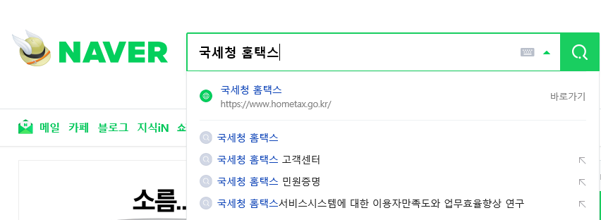 인터넷 검색창에 국세청 홈택스를 입력하시면 바로 국세청홈택스로 이동합니다.
