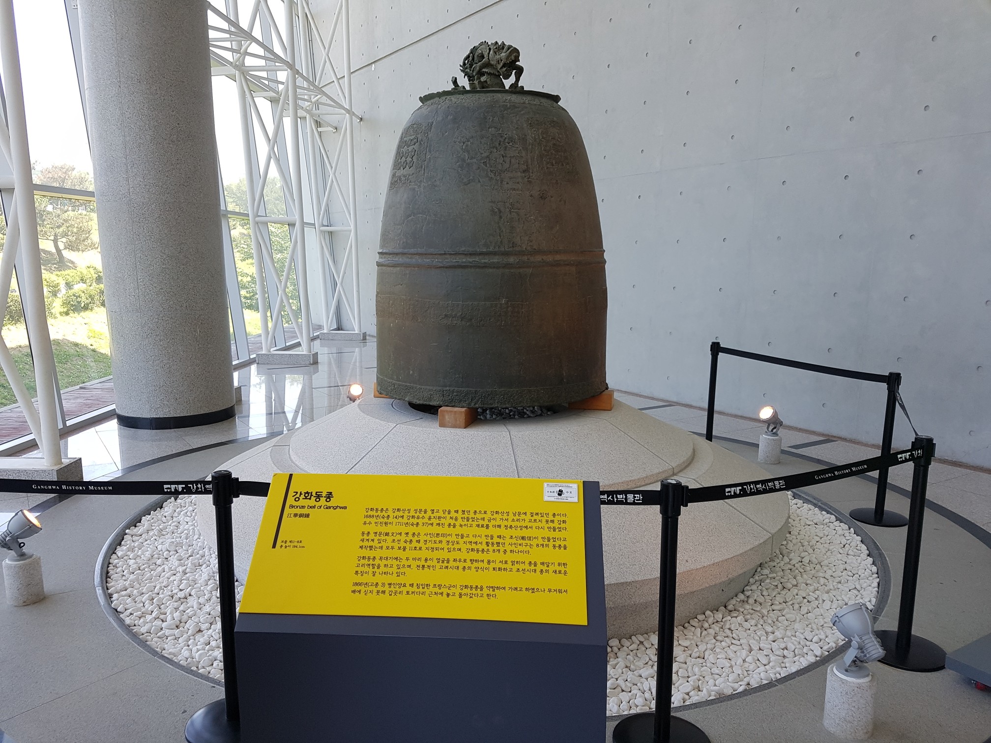 우리나라 보물인 강화동종이 전시돼 있다.