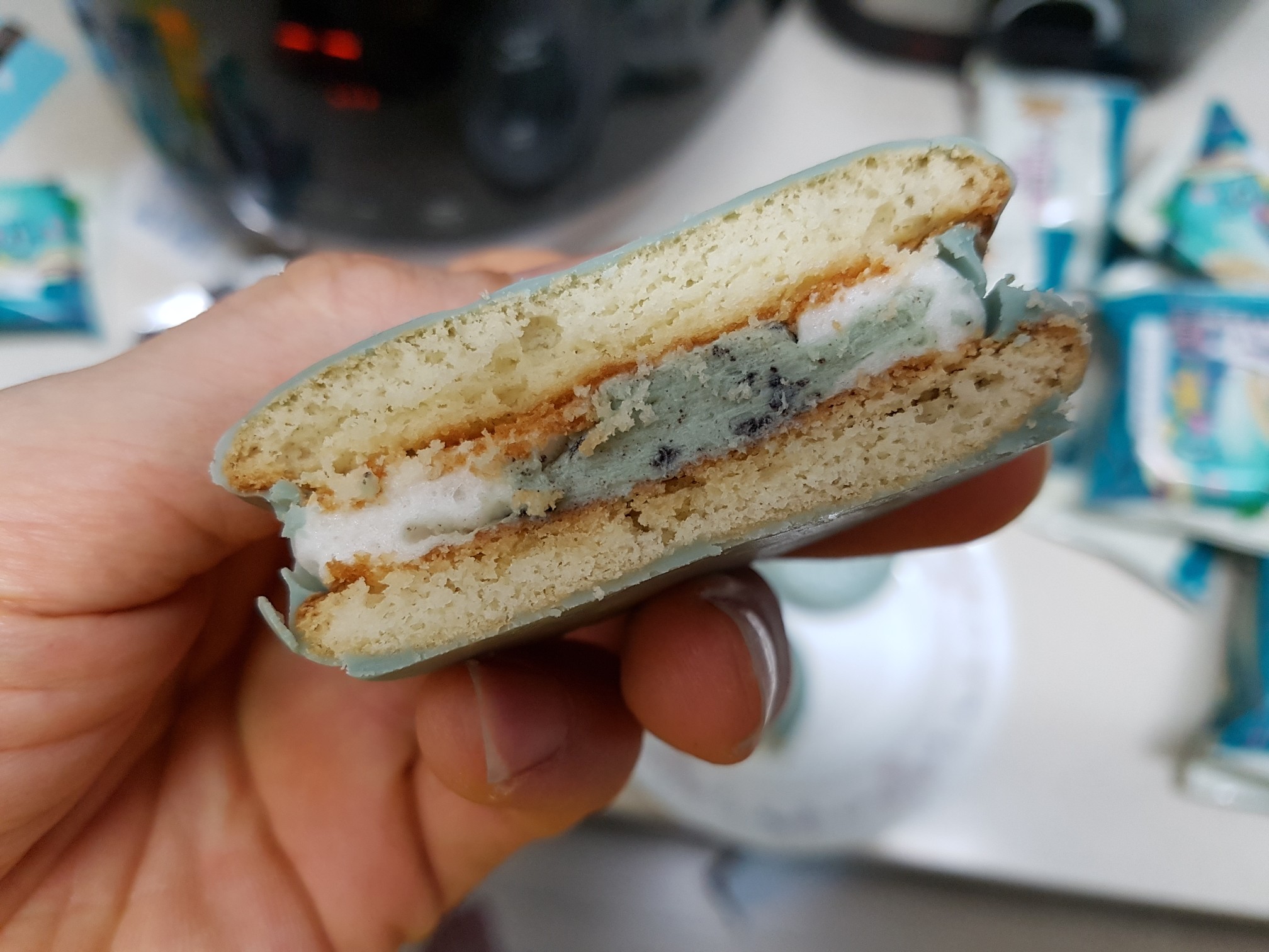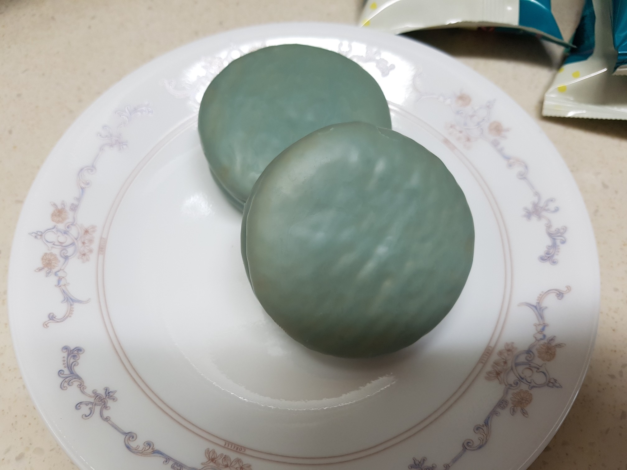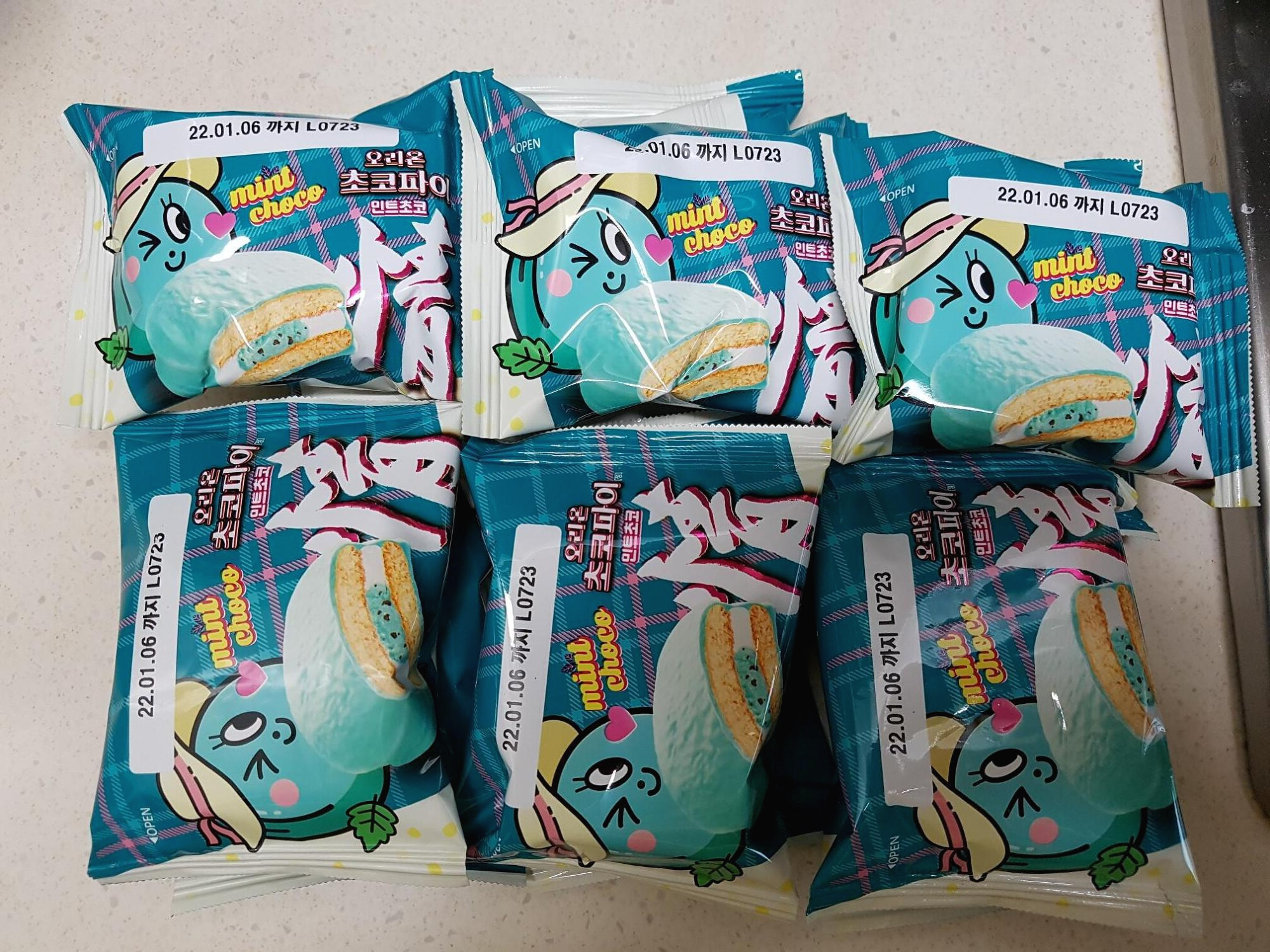 오리온 초코파이 하면 빨간색을 생각하기 마련인데, 이런 민트 색이라니 깜짝 놀라서 이마트에서 집어 들었다.ㅋㅋ