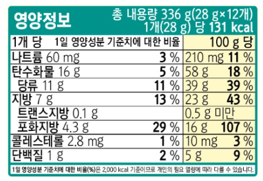 초코파이 민트초코의 영양정보 1개(28g)ekd 131kcal.