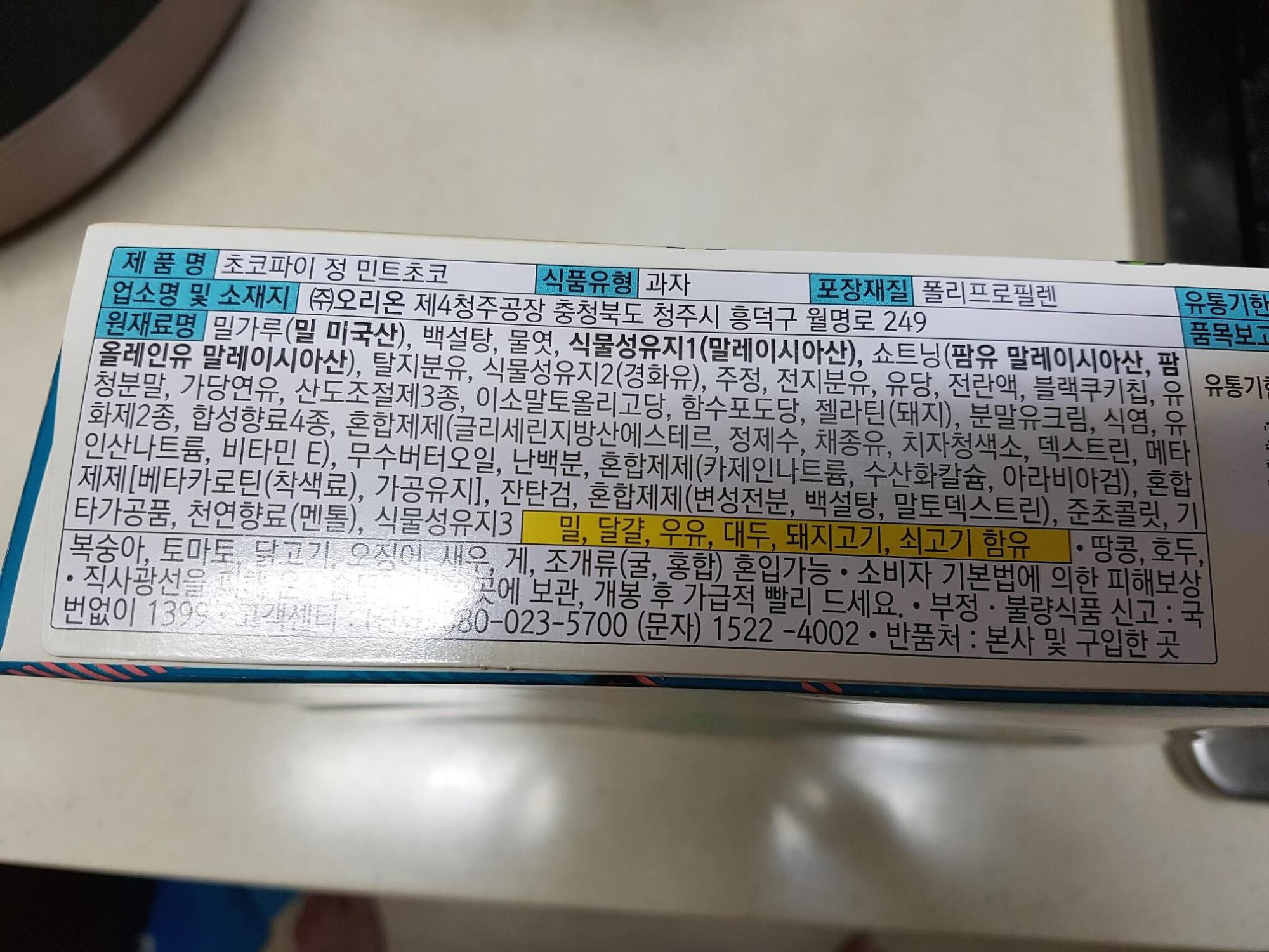 초코파이 정 민트초코의 원재료!