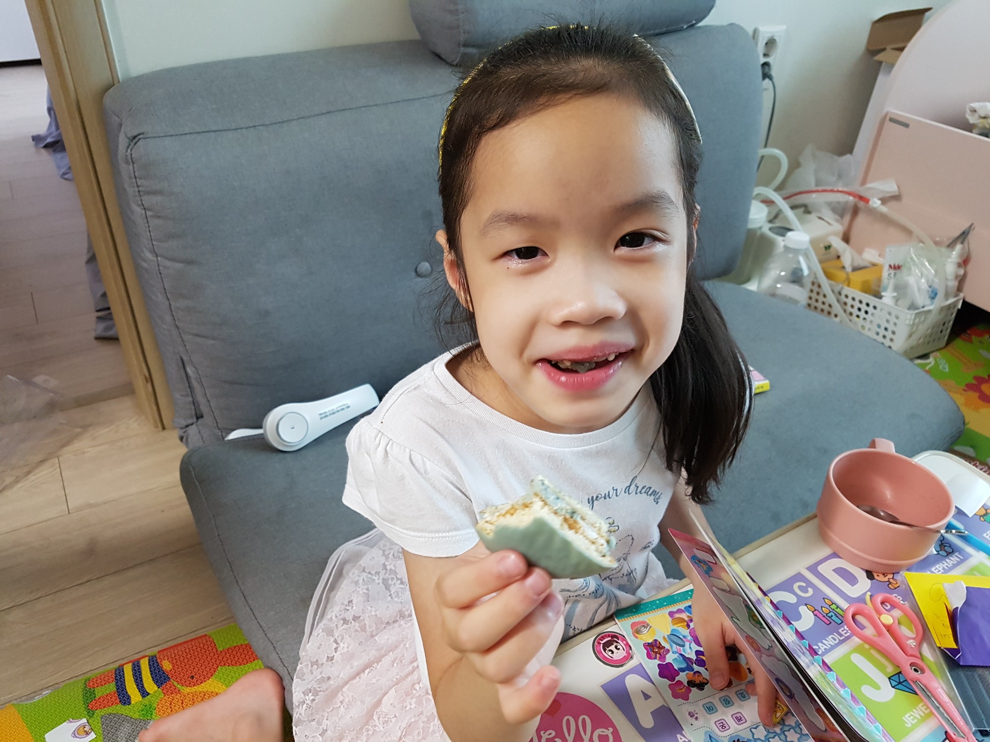 웃으면서 아빠인 나에게 초코파이 민트초코를 건네면서 하는 말,