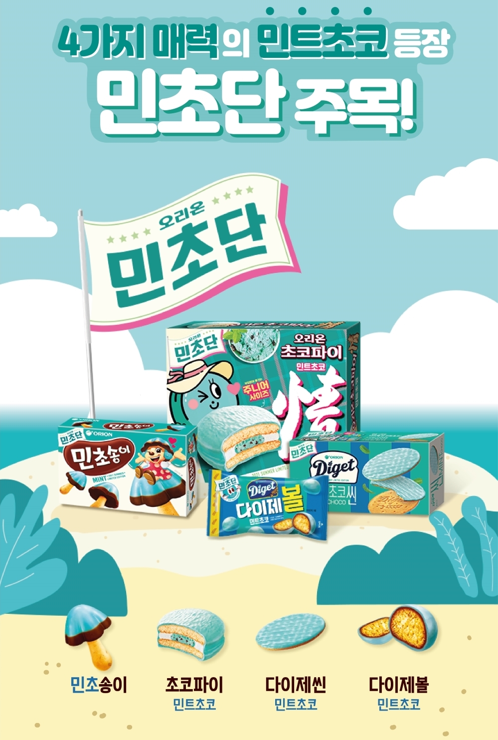 오리온에서 초코파이 민트 외에도 민초송이, 다이제씬 민트초코, 다이제볼 민트초코 등 4가지 매력의 민트군단인 민초단을 내놓았으니, 한번 드셔 보시길 추천해 본다.