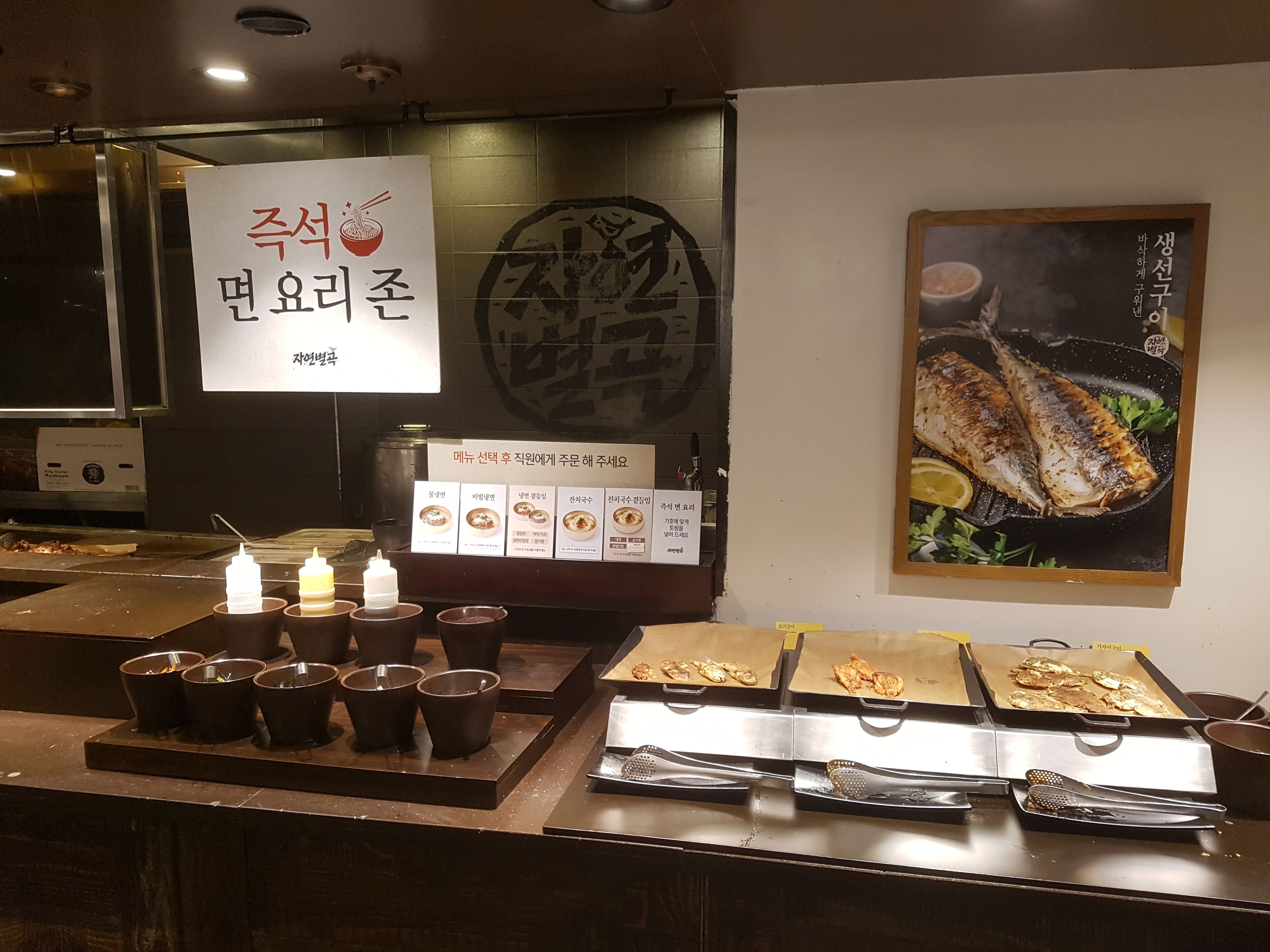 가든파이브 자연별곡은 테이블이 마 구역까지 있는 걸로 봐서 100석 4~500명은 족히 수용할 수 있는 매장 같았다.