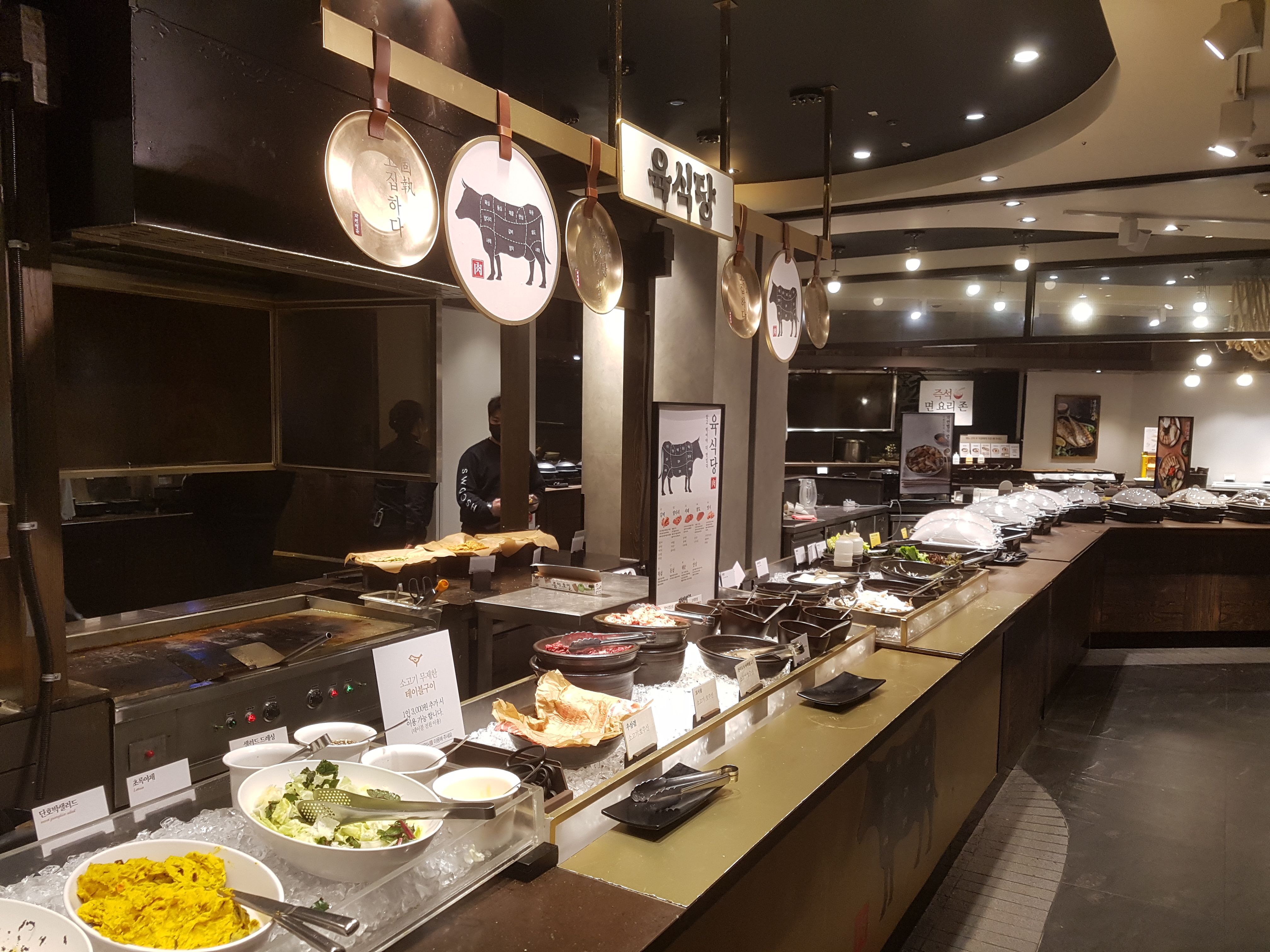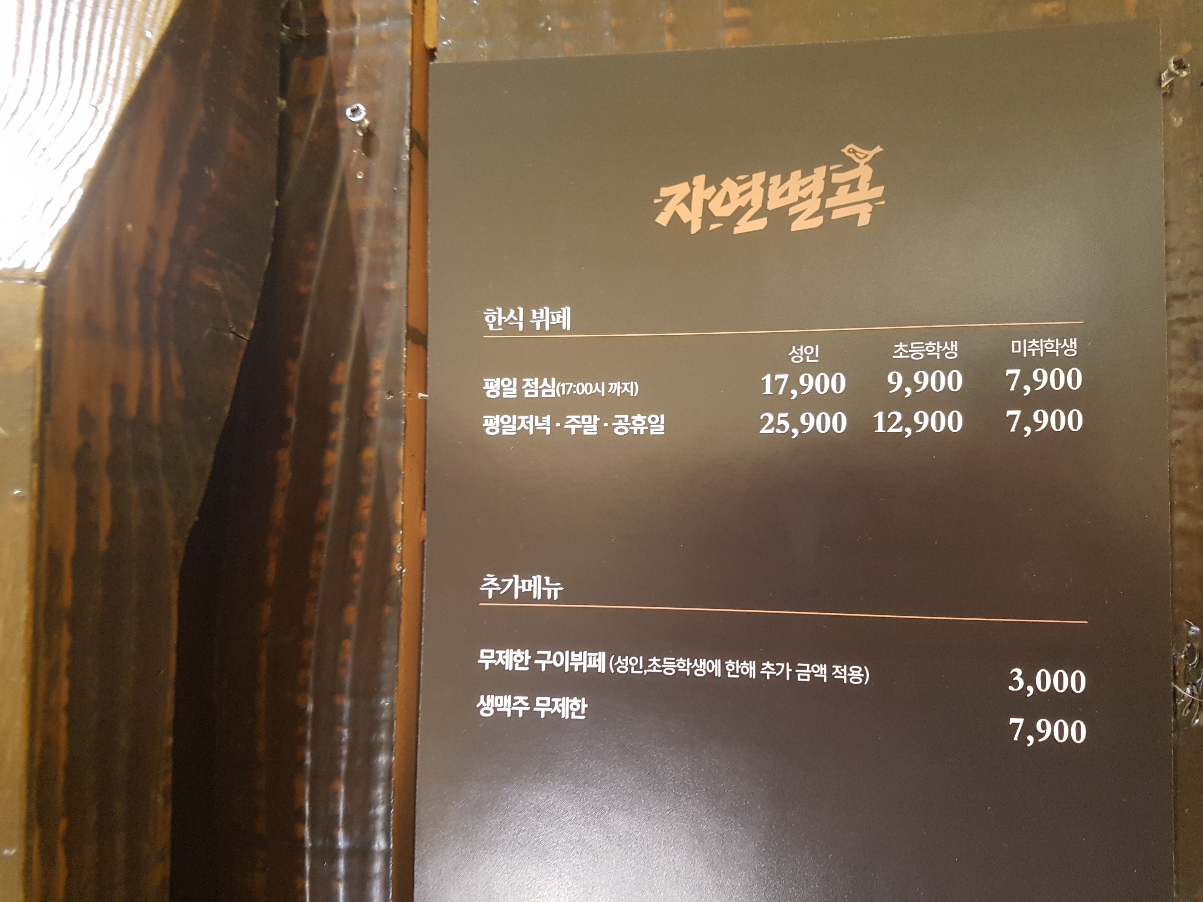 자연별곡은 한식뷔페 레스토랑인데 테이블구이 1인당 3천원만 추가하면 무제한으로 소고기를 먹을 수 있다는 장점이 있다.