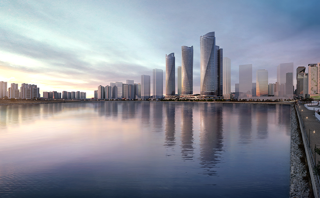 송도 6.8공구 핵심사업인 워터프런트 호수와 마주하고 있다. 워터프런트 사업은 송도국제도시 외곽을 'ㅁ'자 형태로 호수와 수로를 연결하는 사업으로, 인천경제자유구역청은 오는 2027년까지 교량, 인공해변, 수상터미널, 마리나시설, 해양스포츠 체험장 등을 조성할 계획이다.