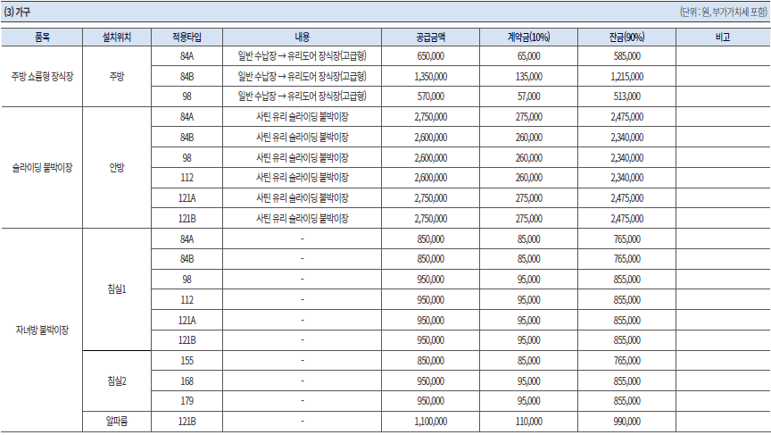 단, 9억원 이하 세대에 한하여 이자후불제 조건으로 총 분양가격의 40% 범위 내에서 위탁사가 융자 알선을 시행할 예정이다.