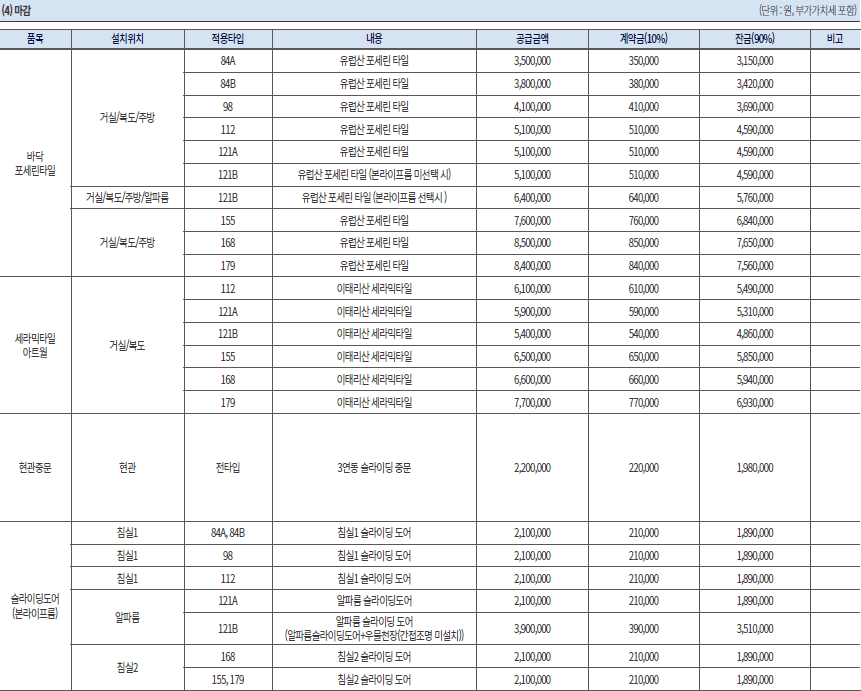 계약금 10%, 중도금 60%, 잔금 30%로 구성된다.