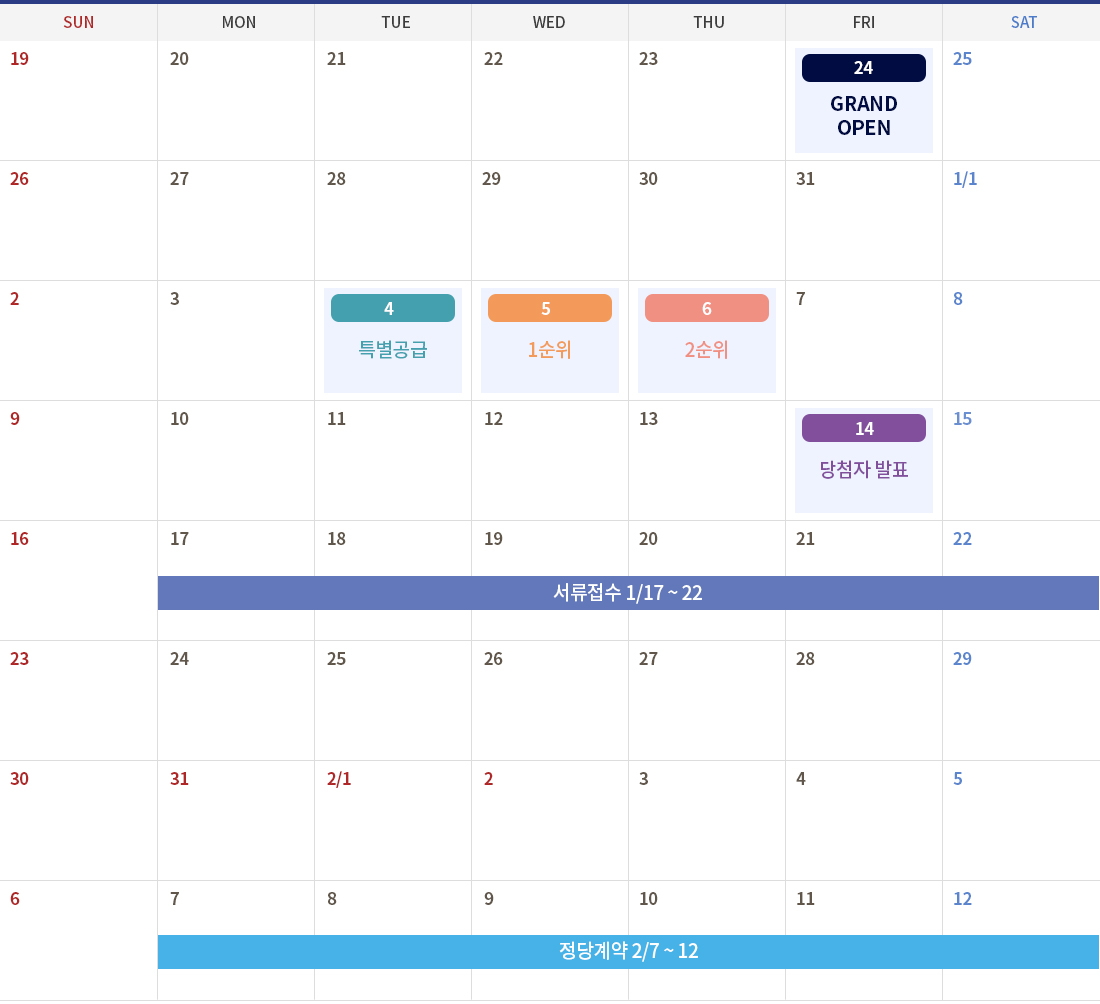 첨자는 14일 발표되고, 당첨자 계약은 2월 7일부터 12일까지 6일간 진행되는 청약일정이다.