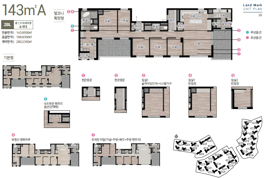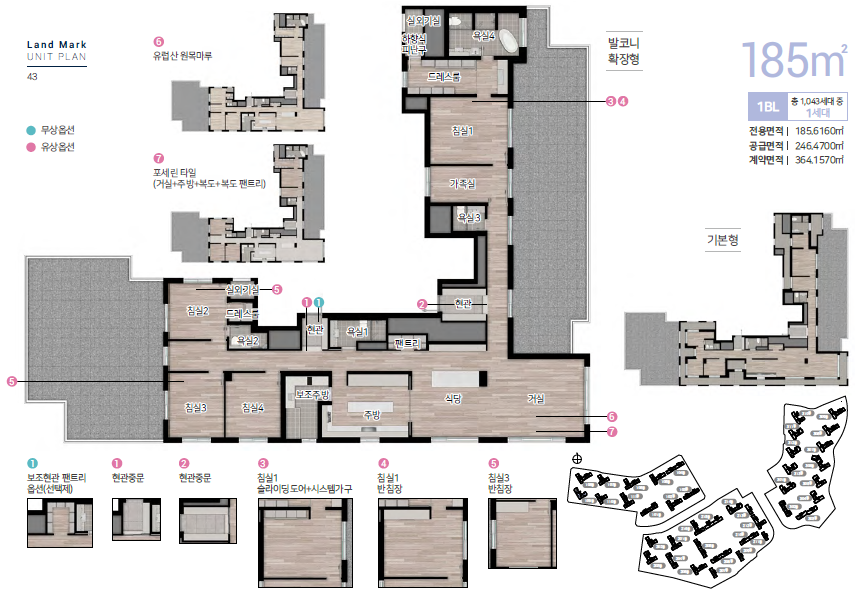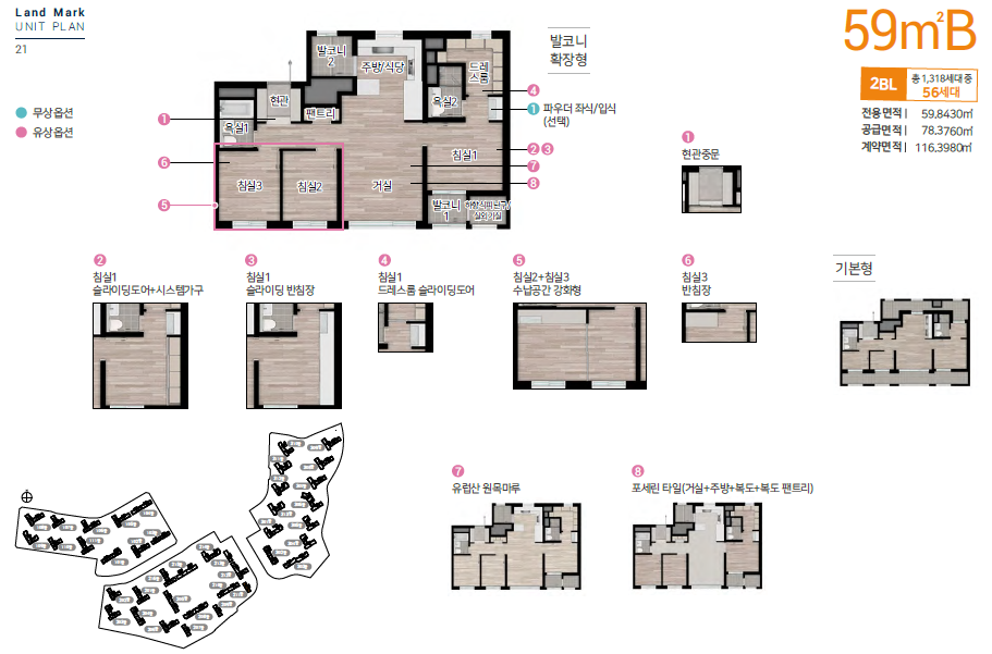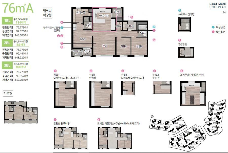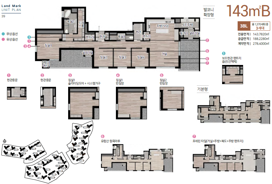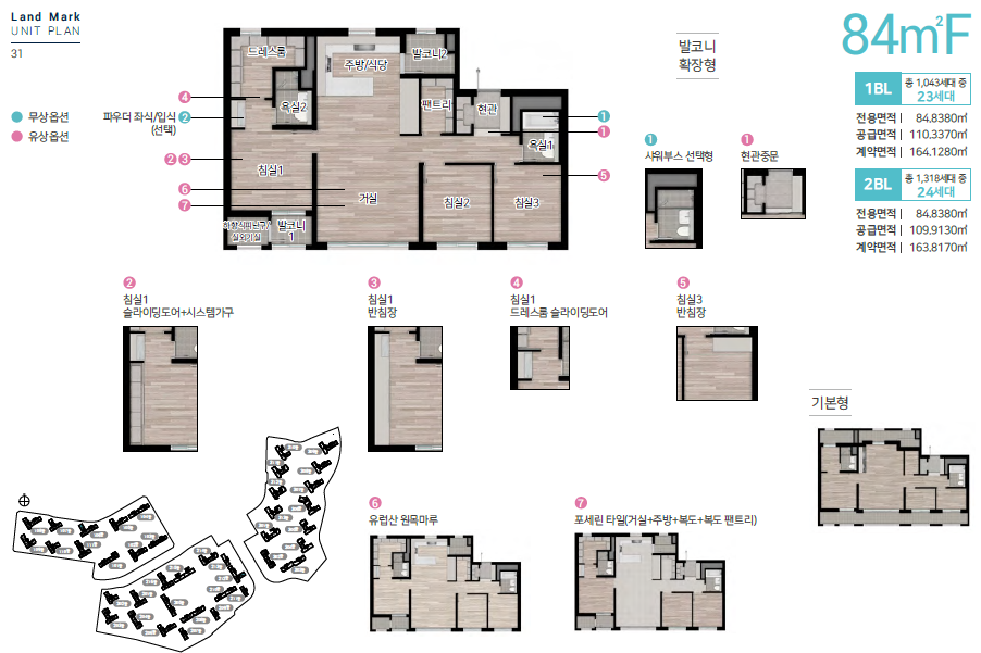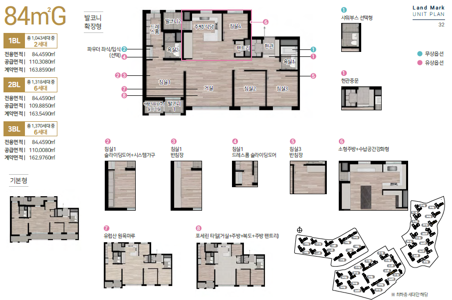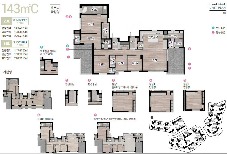 빠르게 변하는 라이프스타일을 반영해 새롭게 개발된 평면선택제도 적용된다. 평면선택제를 통해 침실 2, 3을 수납공간 강화형으로 선택할 수 있으며, 주방 공간의 경우 최근 트렌드에 맞춰 주방은 작게, 다이닝 공간은 넓게 쓰는 ‘소형 주방+수납공간 강화형’ 옵션을 선택할 수 있다.