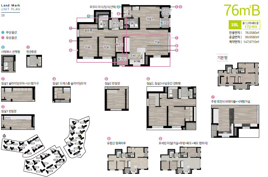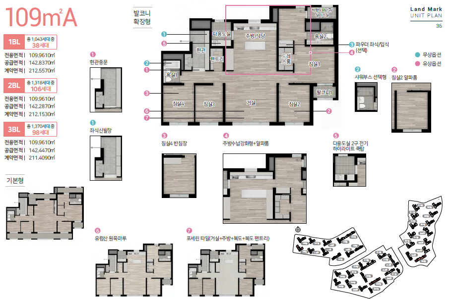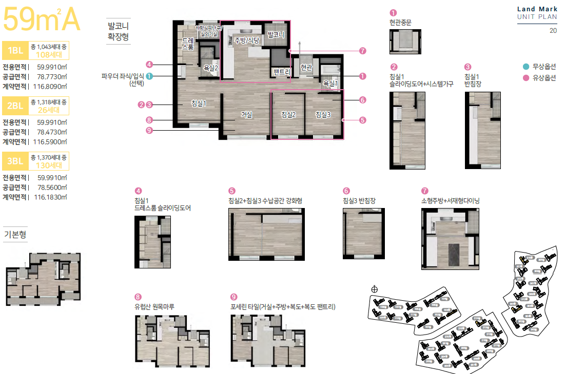 3블록은 ▲59㎡A 130가구 ▲59㎡C 44가구 ▲59㎡D 29가구 ▲76㎡A 166가구 ▲76㎡B 172가구 ▲84㎡A 303가구 ▲84㎡B 121가구 ▲84㎡C 243가구 ▲84㎡E 51가구 ▲84㎡G 6가구 ▲84㎡H 3가구 ▲109㎡A 98가구 ▲펜트하우스 4가구 등 수요자들의 선택의 폭을 넓힌 다양한 타입으로 이뤄져 있다.