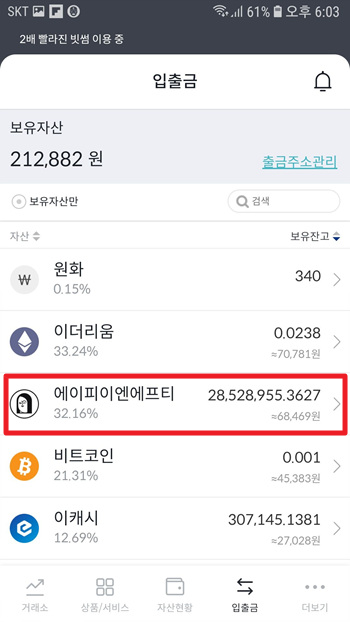 이렇게 자산현황에 들어가면 입금돼서 보유수량이 늘어난 것을 확인할 수 있겠다.