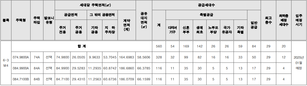 - 엘리프 세종6-3 주택형별 계약면적 및 공급세대수 안내