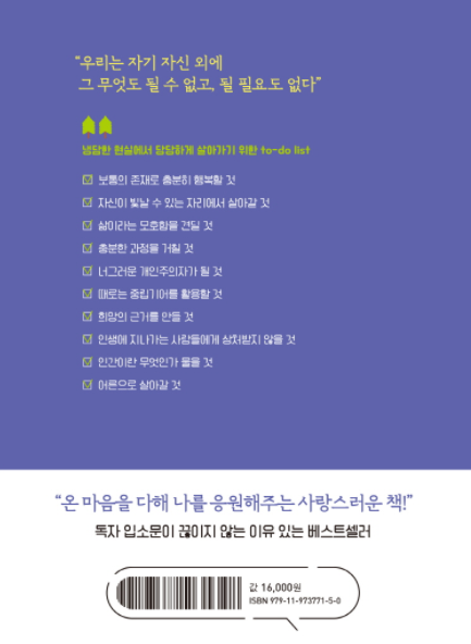 라는 생각들로 도배되었지만, 지금 포스팅으로 올릴 책 때문에라도 나 자신의 삶을 자존감으로 자부심으로 자신감으로 응원하기로 했다. ㅋㅋ