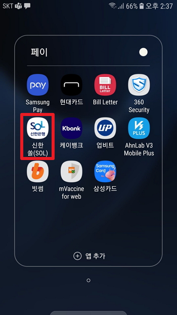 제 핸드폰에 있는 신한쏠(SOL) 앱을 클릭해서 서울사랑상품권 송파지역꺼를 구매해 봤습니다.
