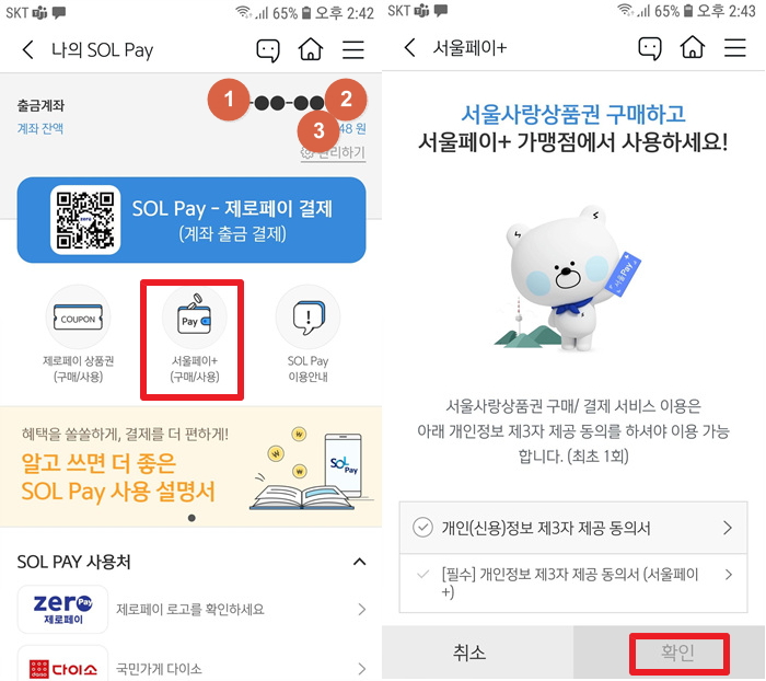 온/오프라인 SOL 제휴처와 제로페이 가맹점에서 사용할 수 있다는 걸 확인하시고요.
