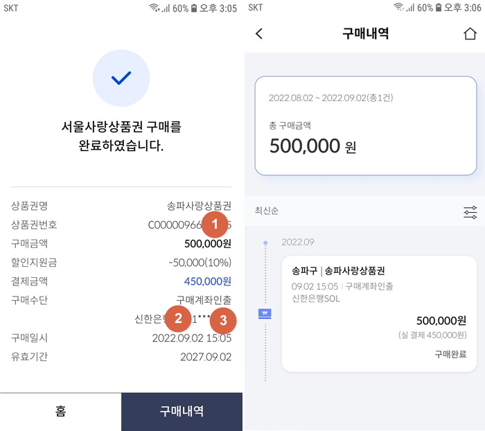 저는 송파구에 살고 있어서 송파사랑상품권을 구매했답니다.