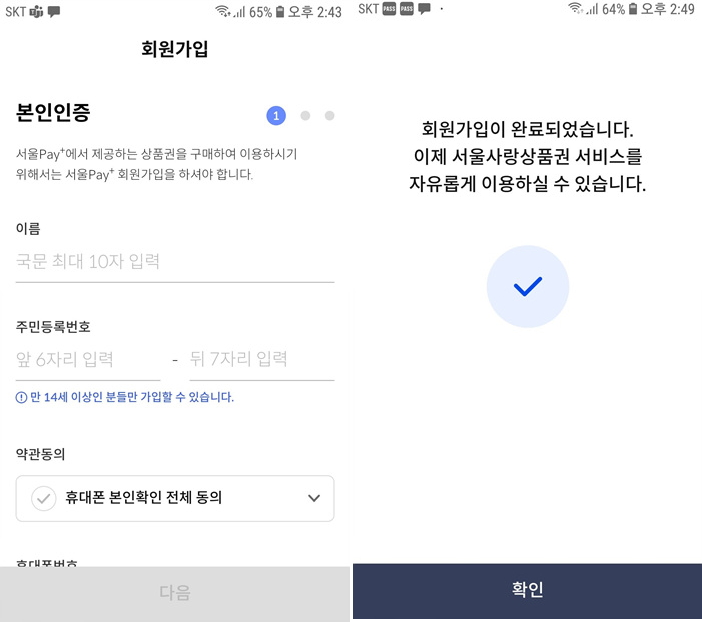 여기서 서울페이+(구매/사용)을 누르고 회원가입을 해야 합니다.