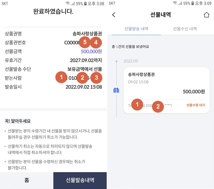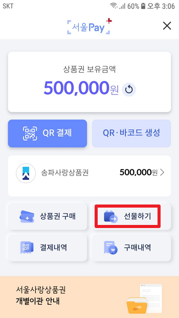 이렇게 송파사랑상품권을 선물로도 발송 할 수 있답니다.