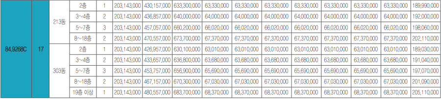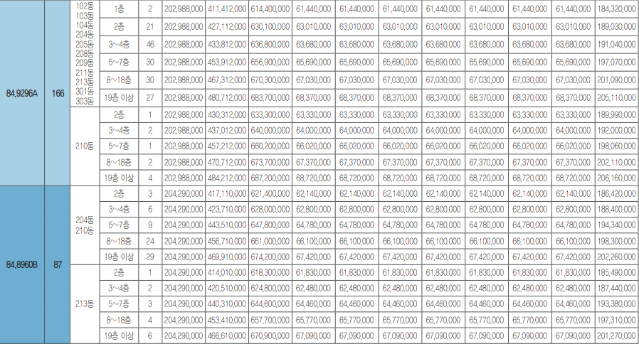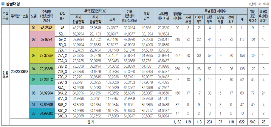 - 주택형별 계약면적 및 공급세대수 안내