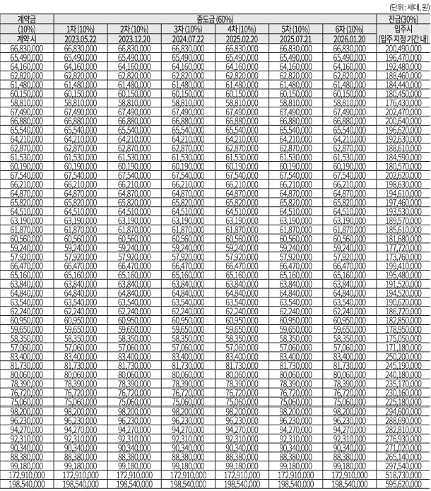 - 분양금 납부일정