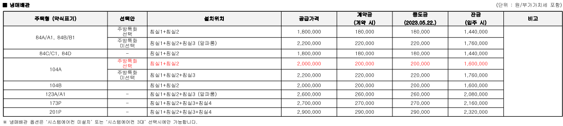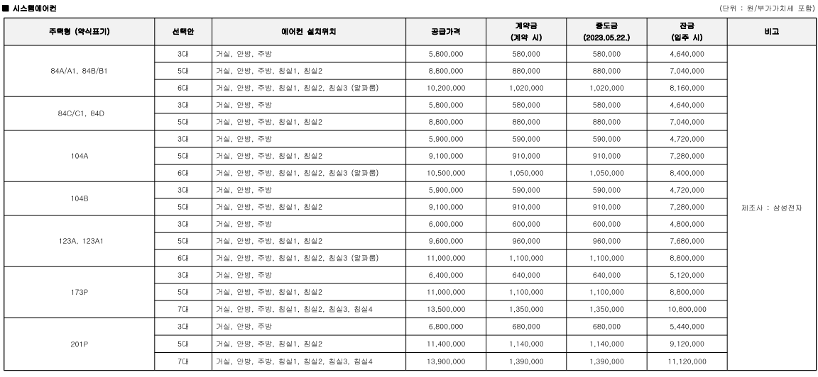 - 추가 옵션 시스템에어컨 설치비